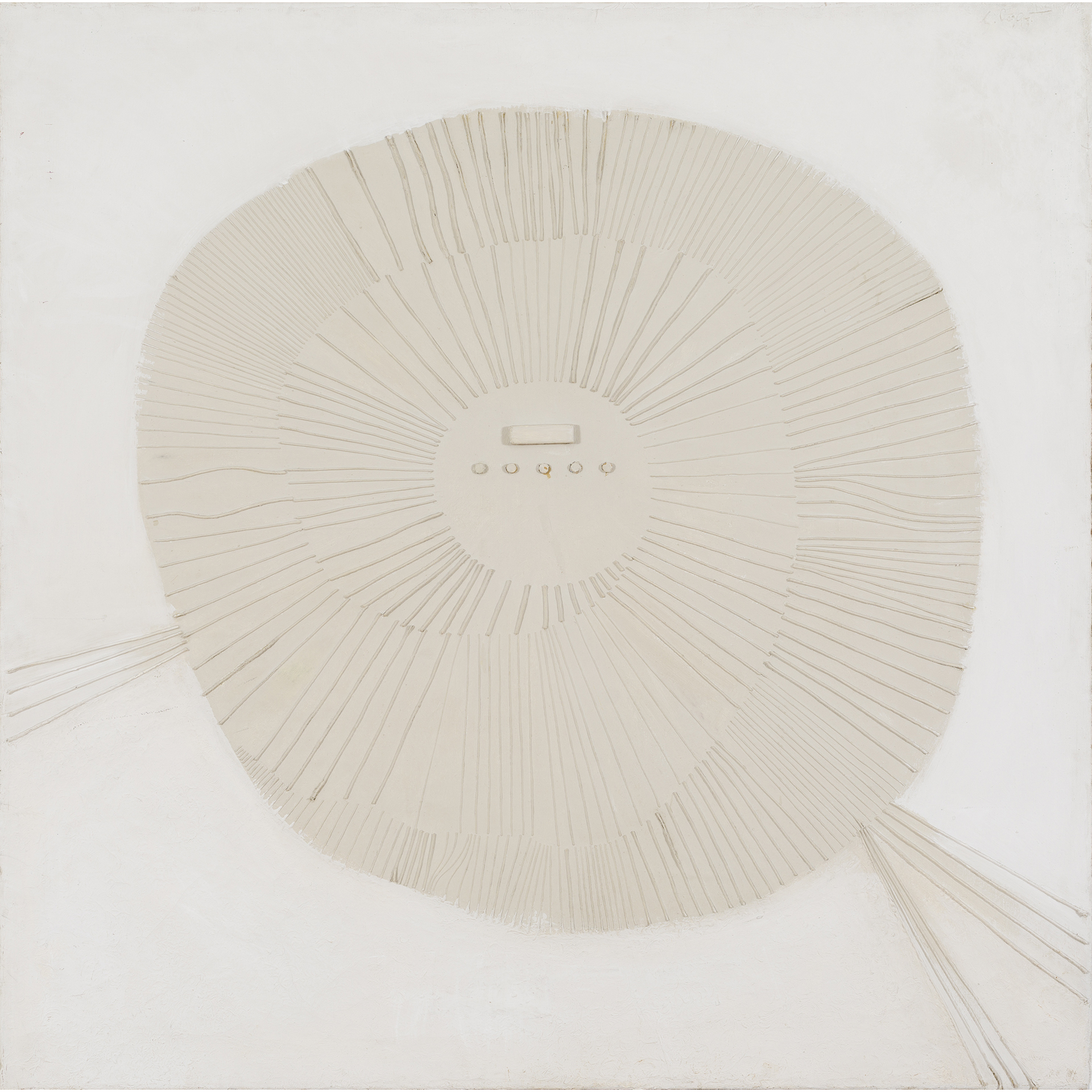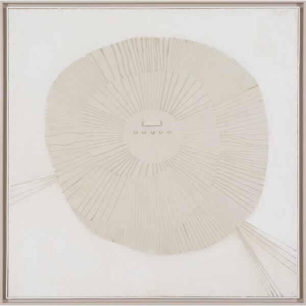 kombinovana tehnika / asamblaž na platnu, 144x144 cm